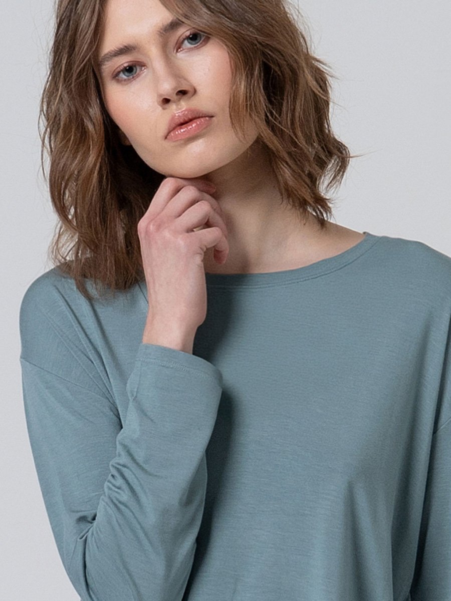 - Hosszú ujjú, puha, lenge viselet