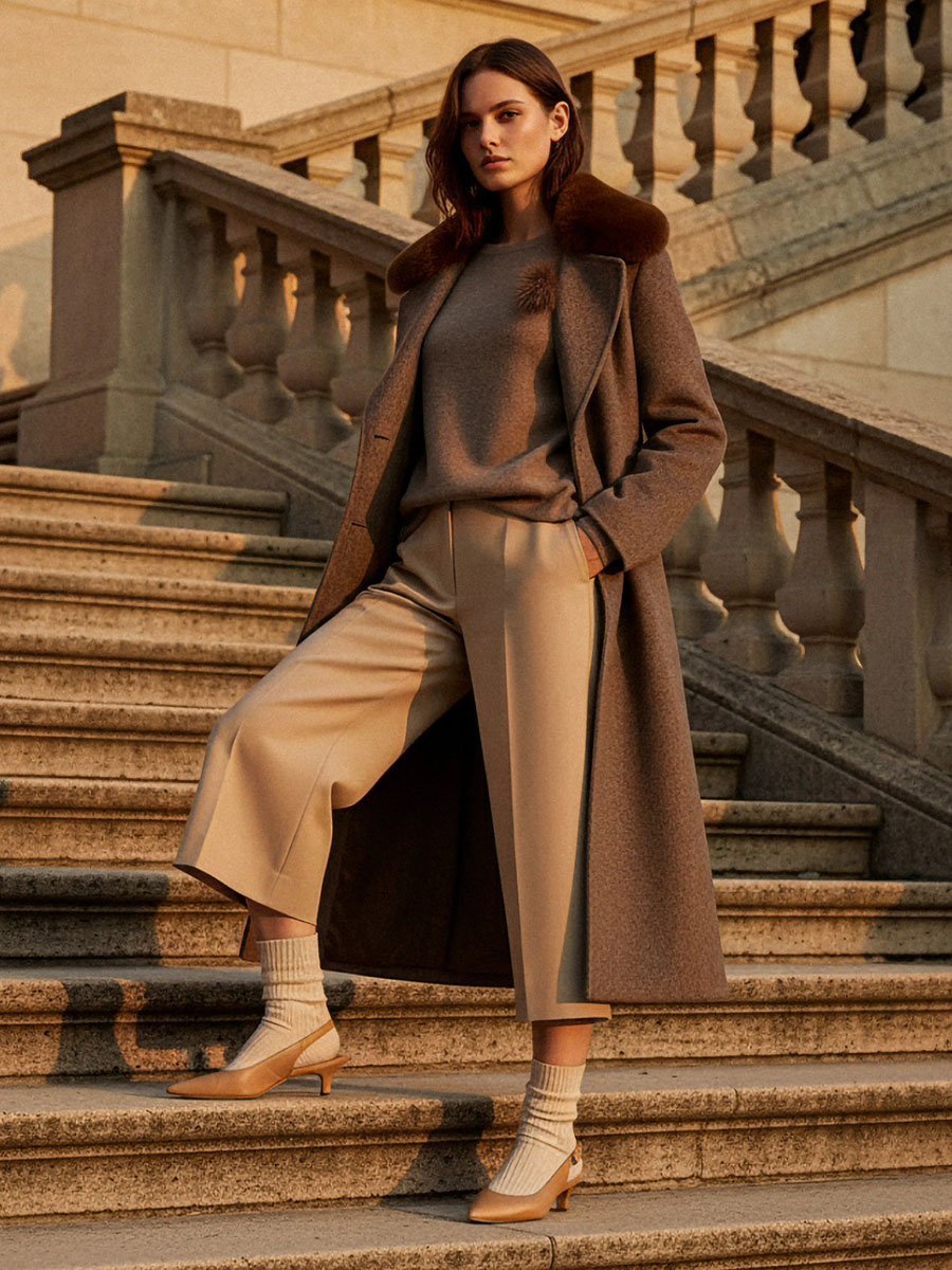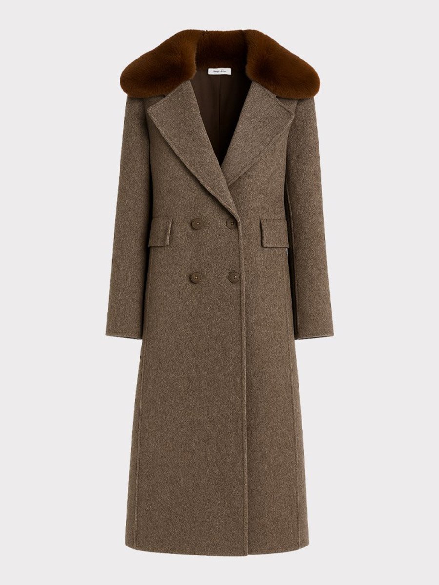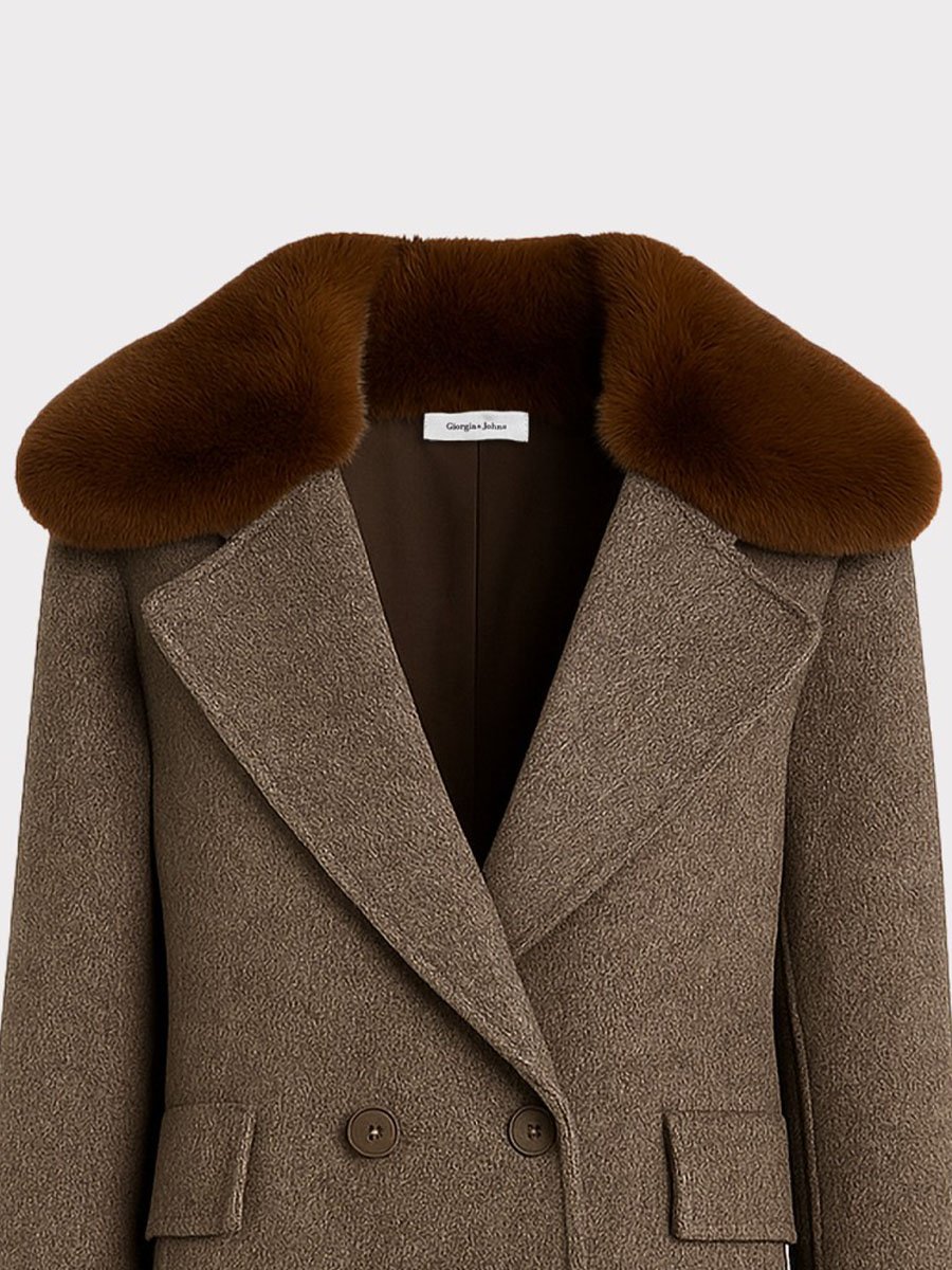 - Ez a dupla soros gyapjúkeverék kabát műszőrme gallérral tökéletes a tél stílusos és elegáns köszöntésére.