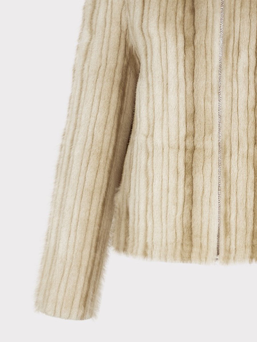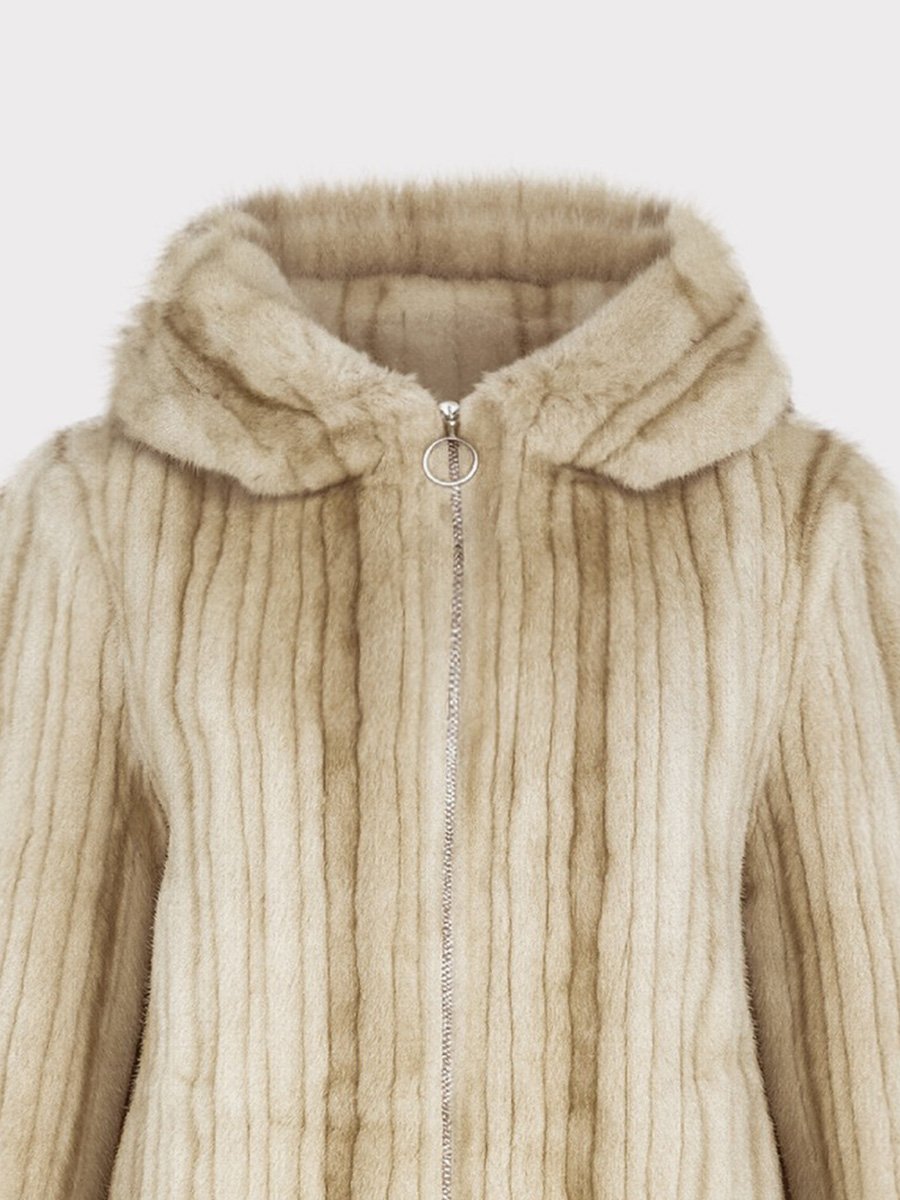 Bézs színű nerc hatású cipzáros kapucnis bunda