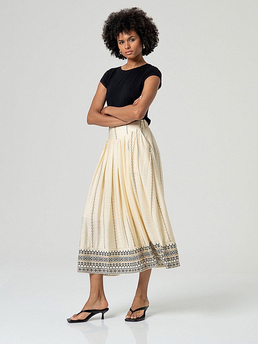 - Bézs színű, hímzett, hosszú szoknya