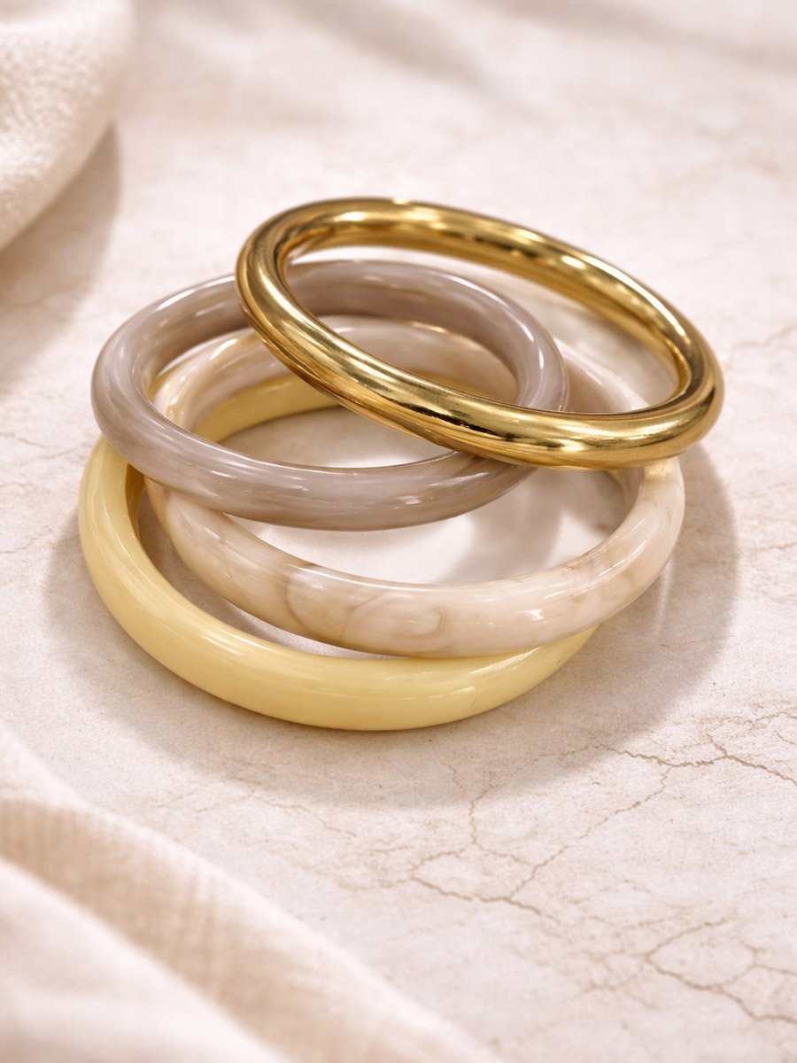 • 1 db aranyszínű és 3 drapp színű, márványos hatású karkötő van a szettben