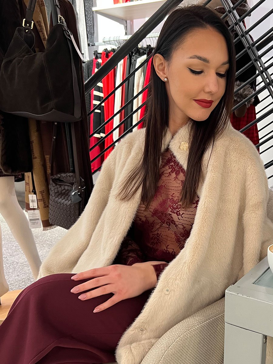 - A kidolgozott szegélyek és a második bőrhatás stílusosan emelik ki a sziluettet.