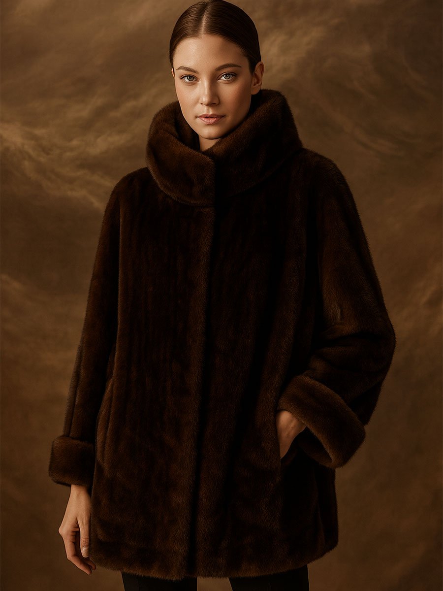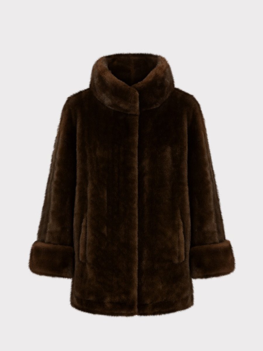 Csoki barna álló gallérú műszőrme bunda