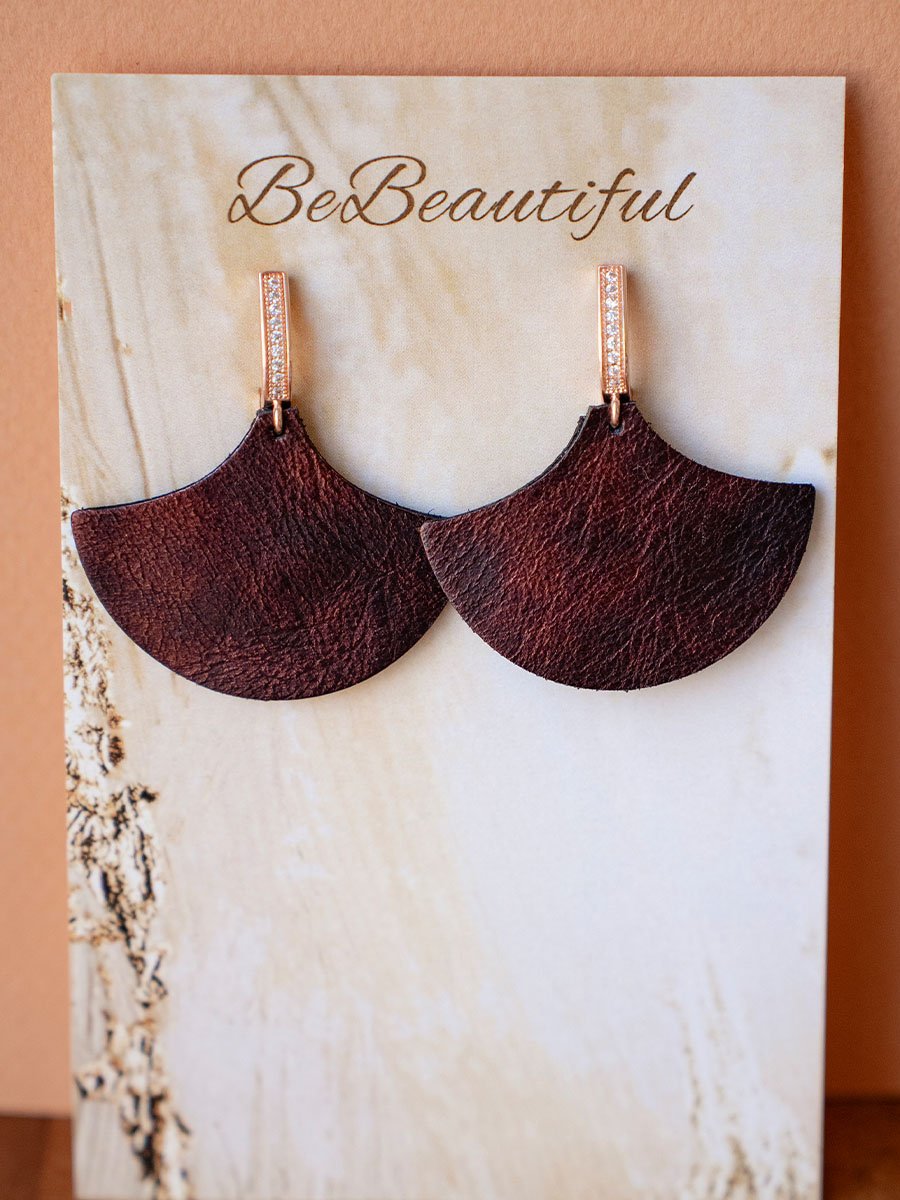 • Egyedi készítésű,csoki barna színű, márványos hatású, cirkónium köves fülbevaló.
