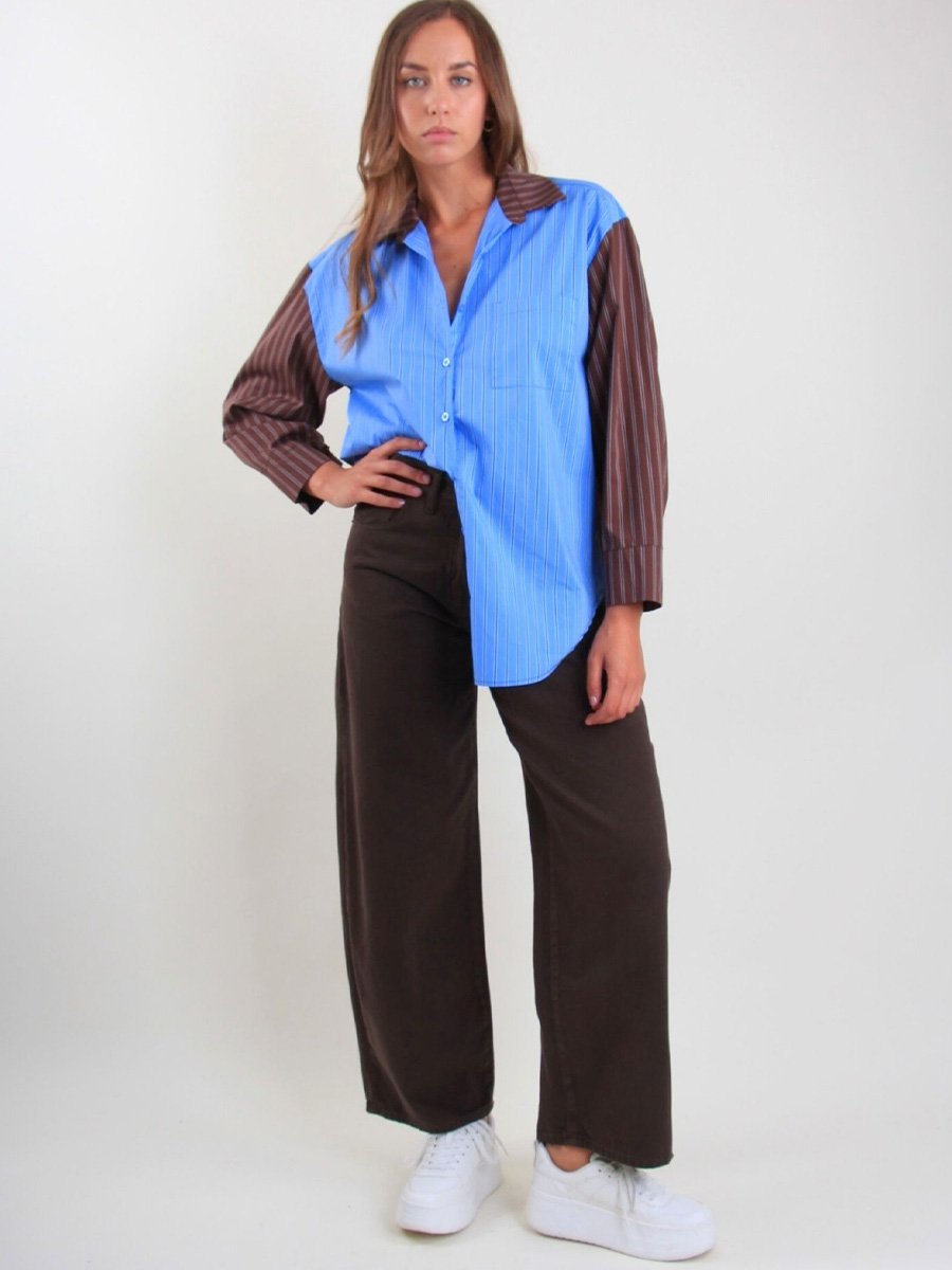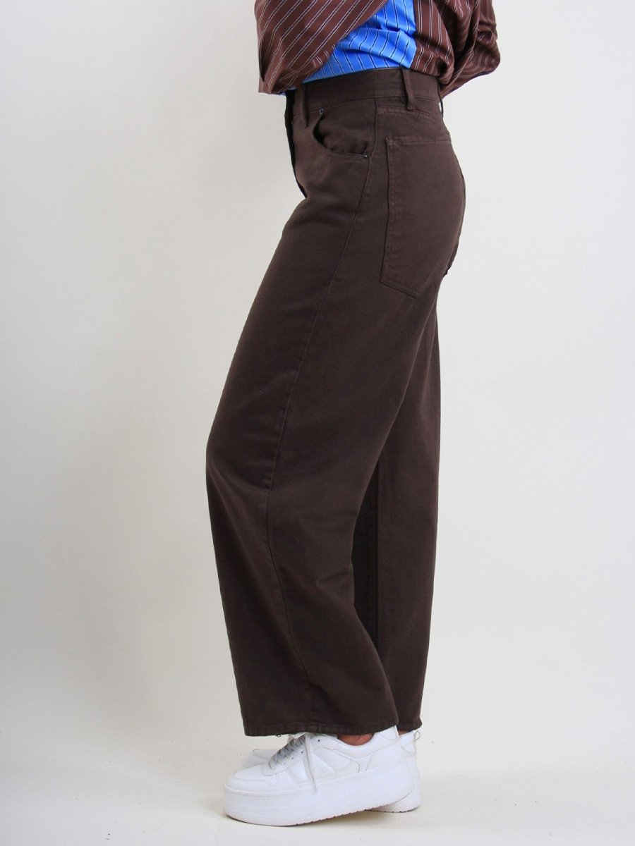 - Magas derekú, széles szárú, egyenes szabású női nadrág, amely tökéletesen laza, mégis elegáns.