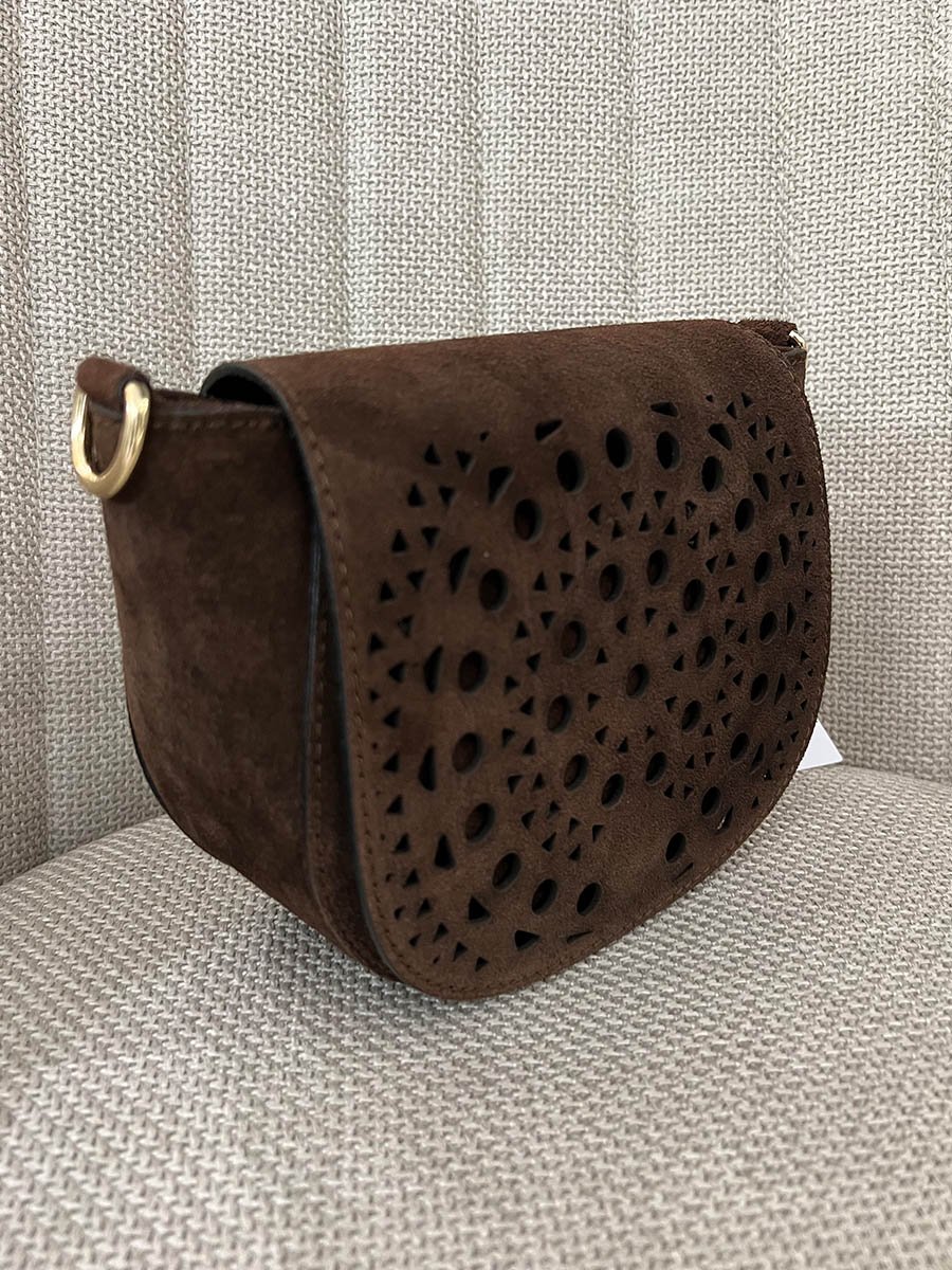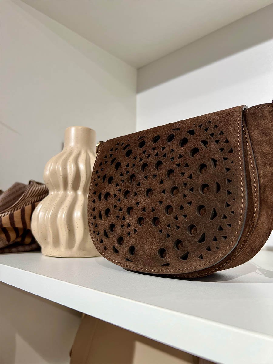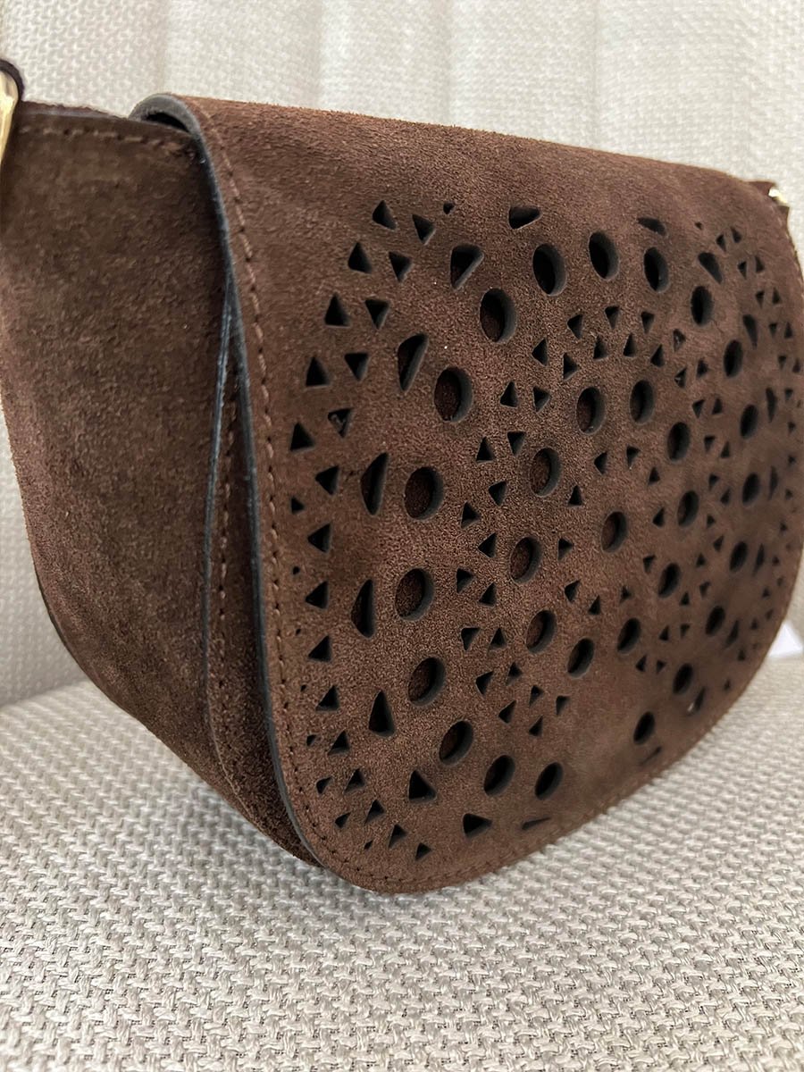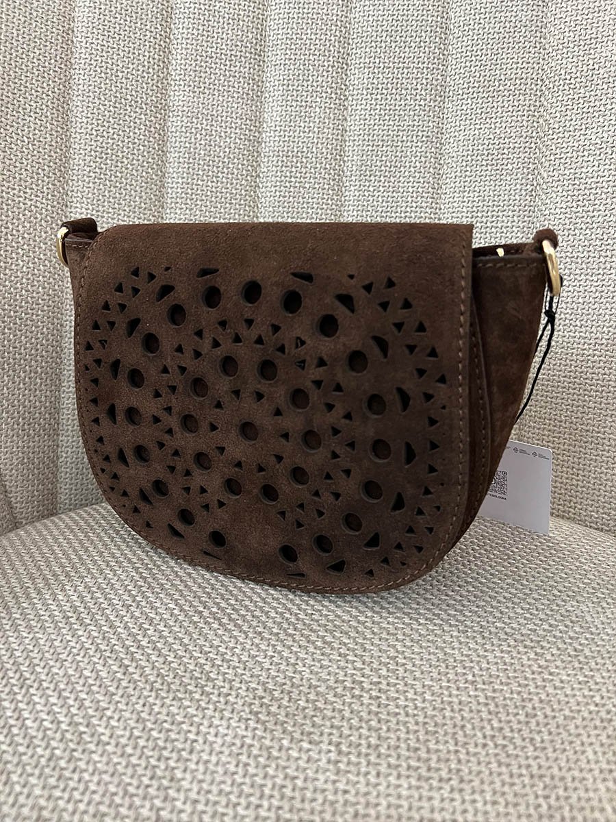 - Csoki barna fedeles, lyukacsos olasz bőr táska.
