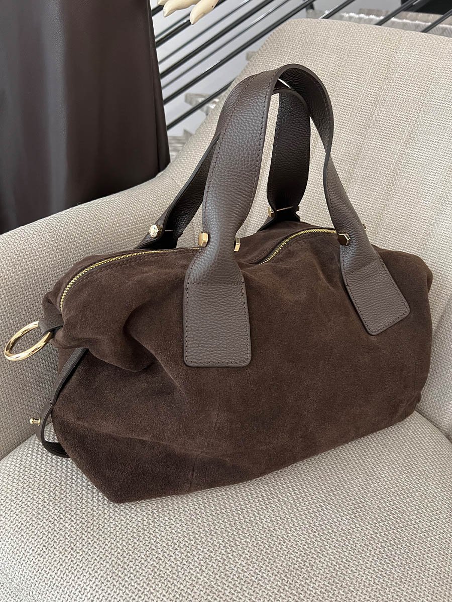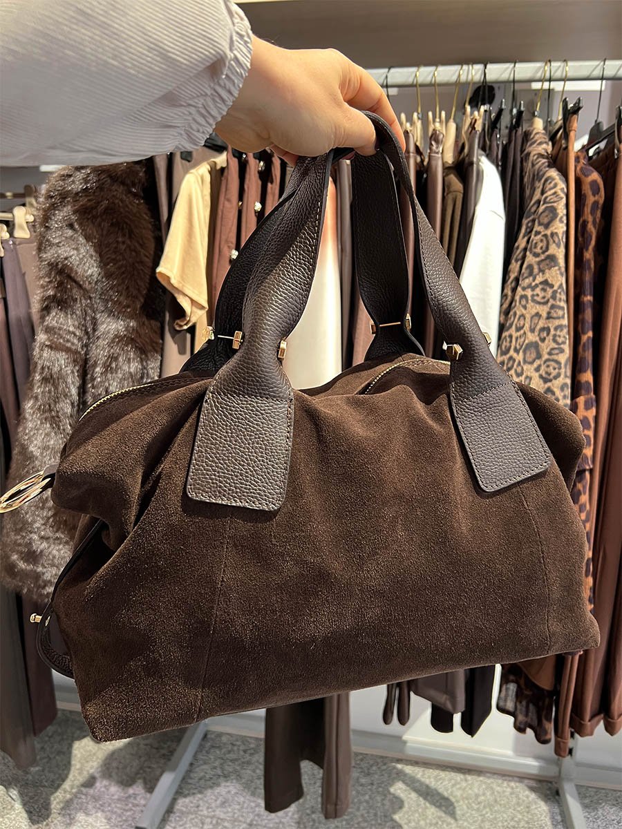- Csoki barna nagy lezser hasított bőr táska.