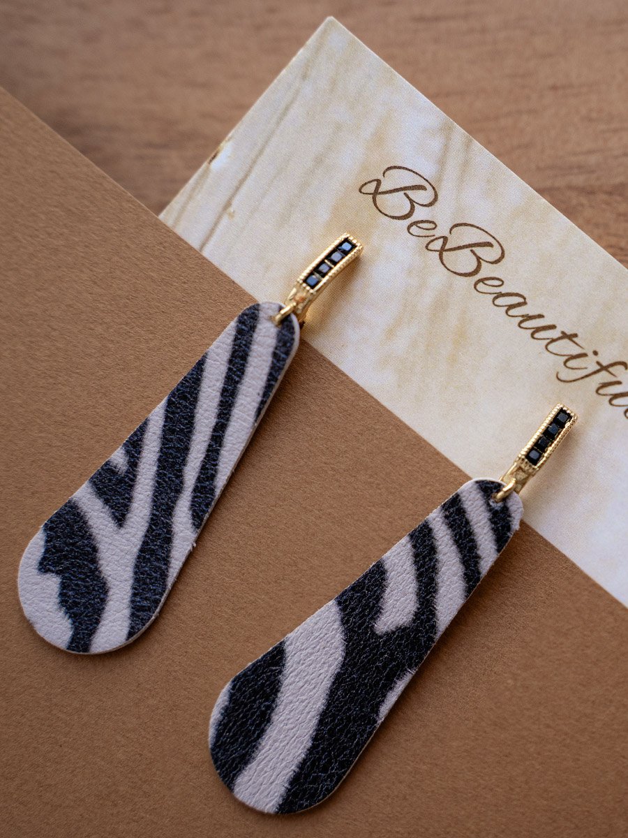- Fekete-fehér, fekete cirkónium köves bőr fülbevaló.