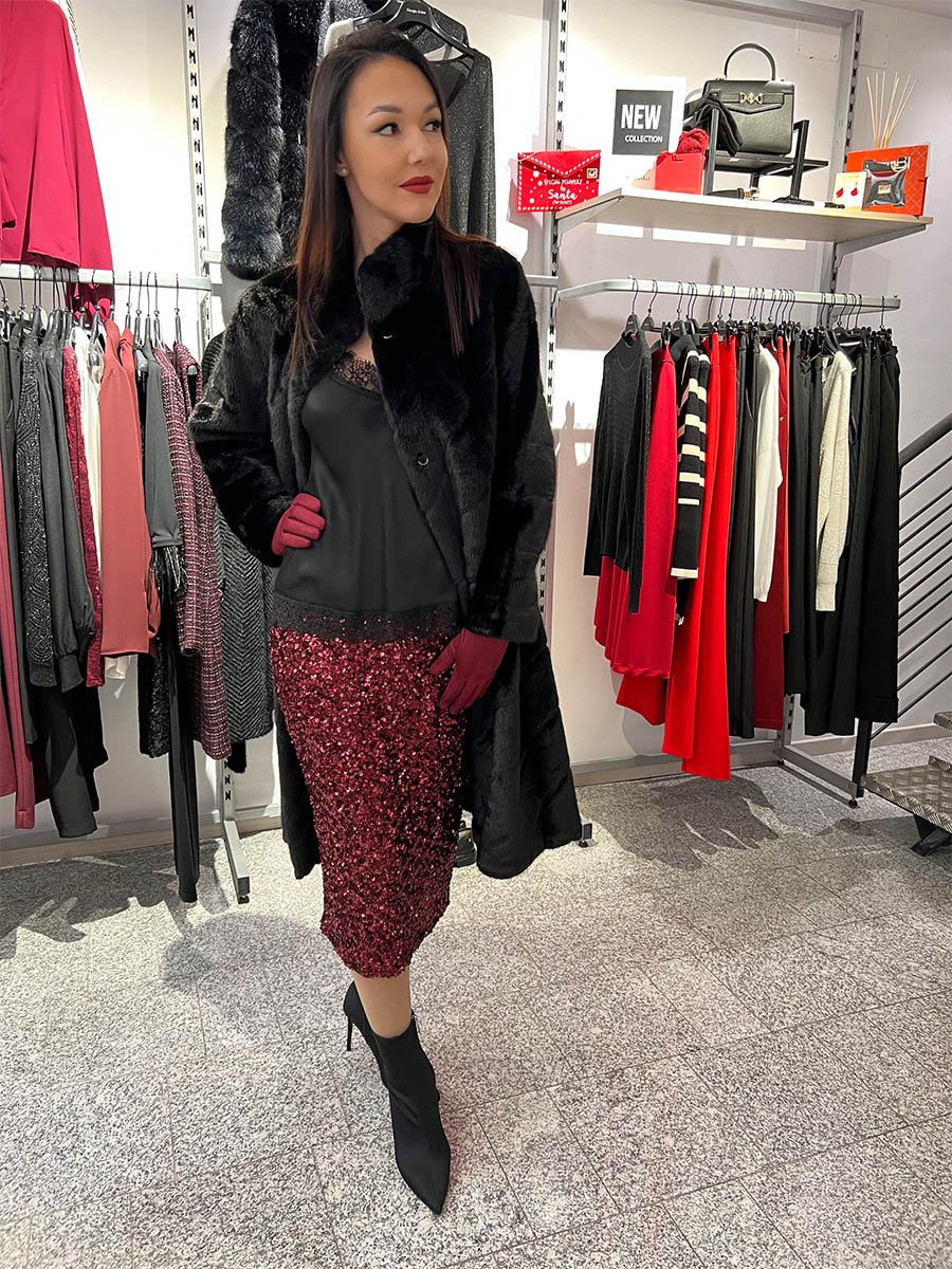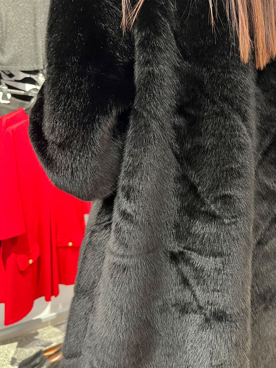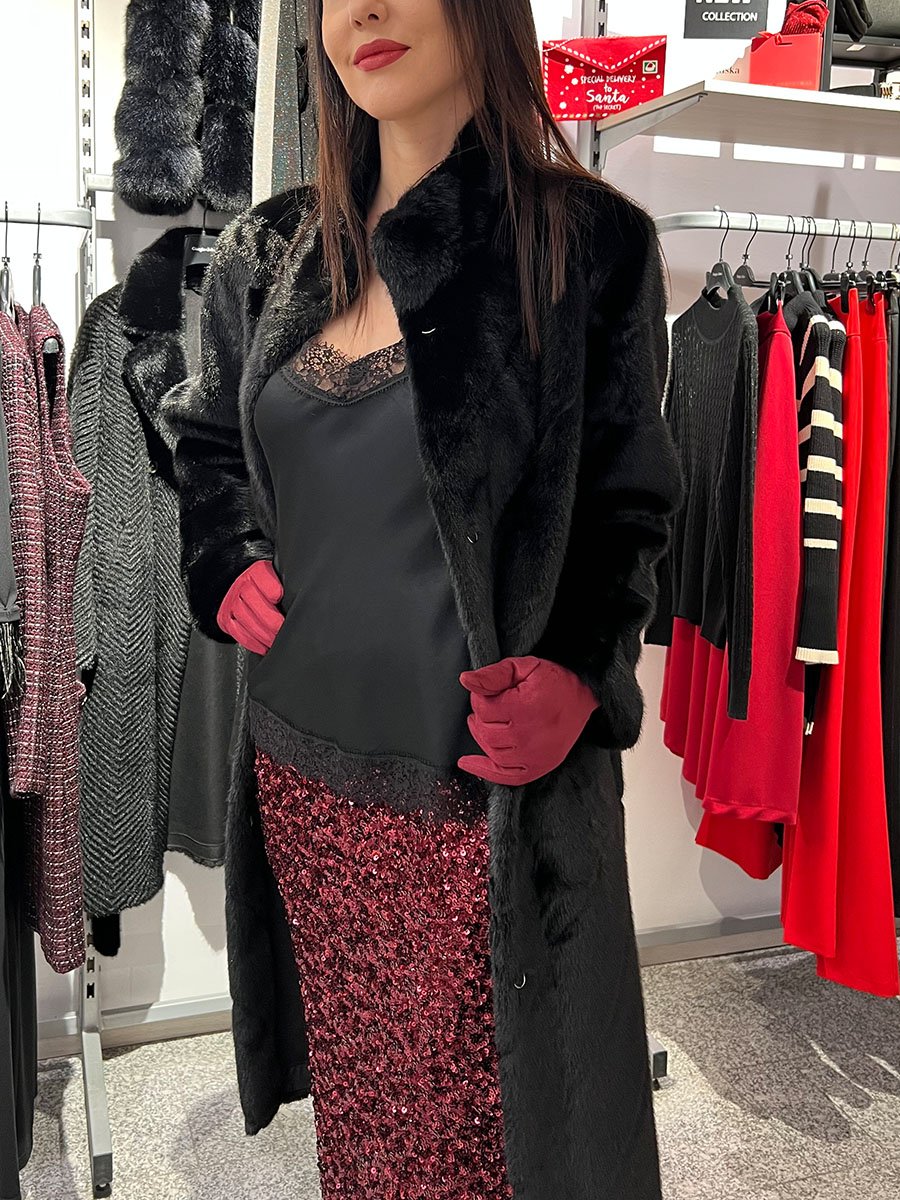 - Hosszú állású műszőrme kabát. Kiváló választás a hidegebb napokra.