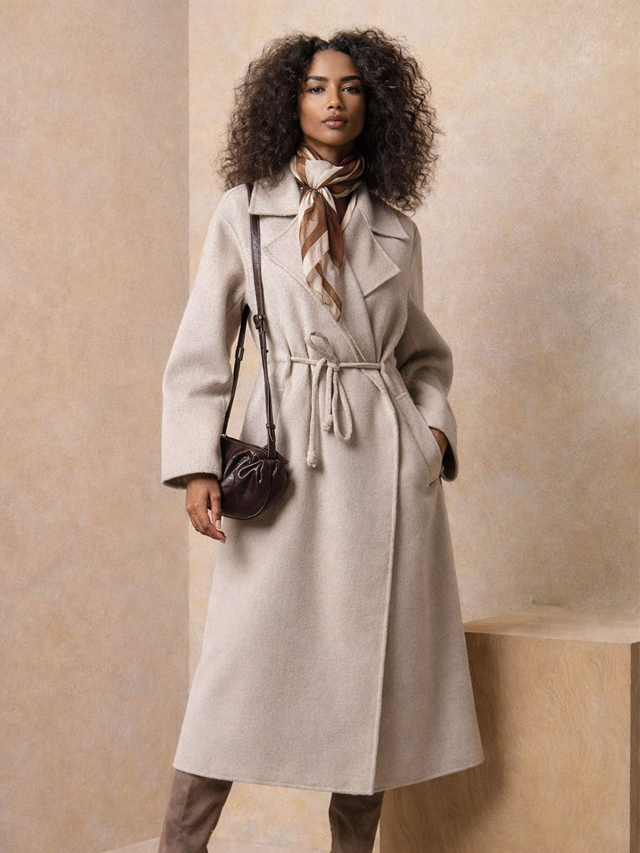 - Bézs színű kézzel készült gyapjú kabát. M-es méret