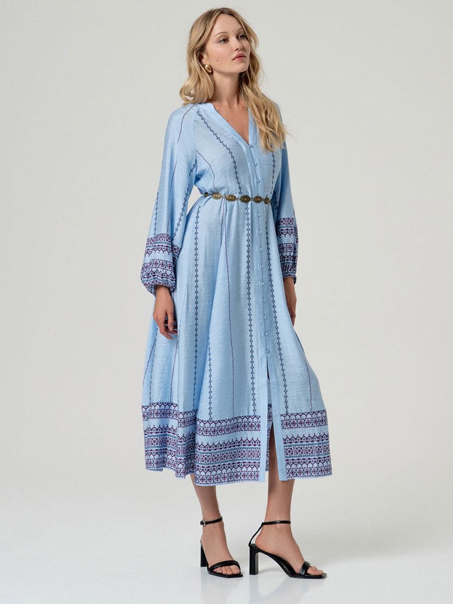 - Kék, hímzett, hosszú ingruha