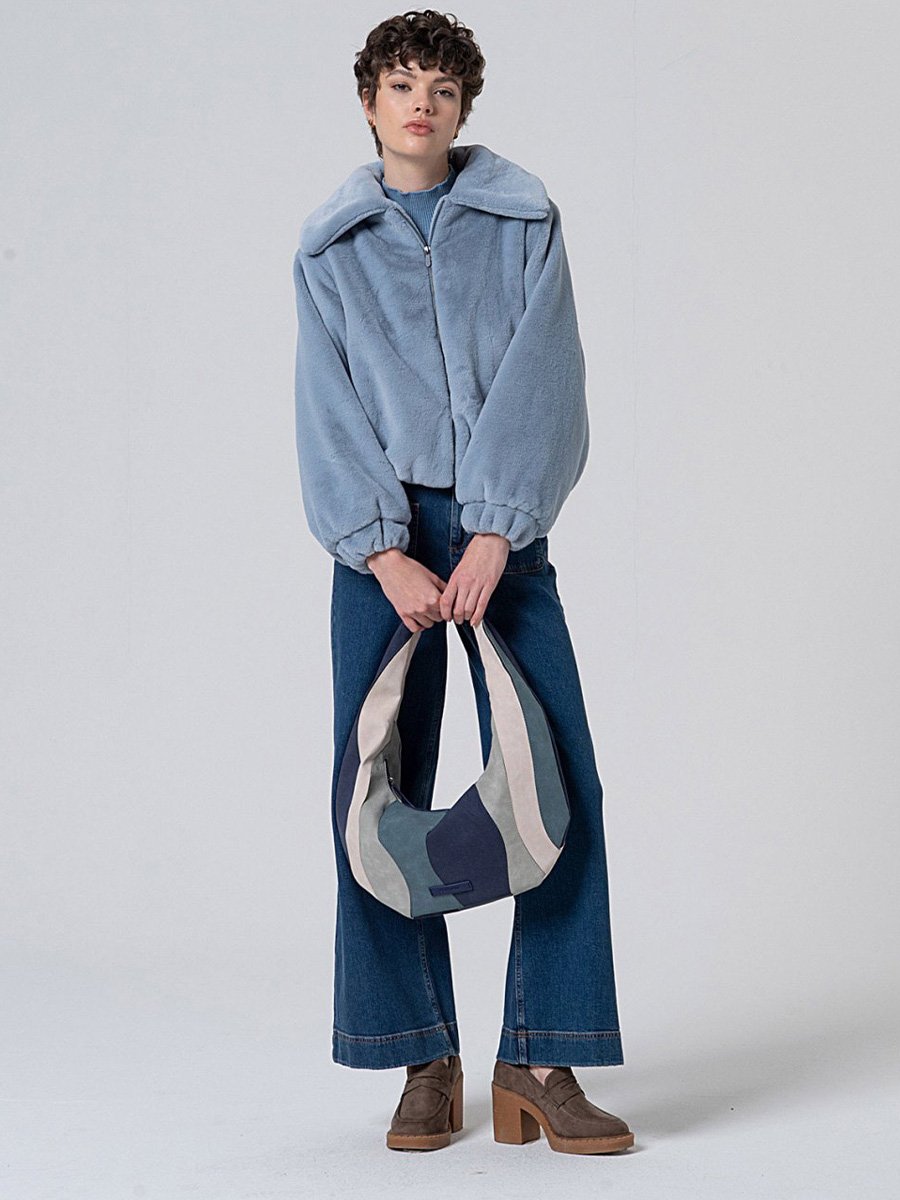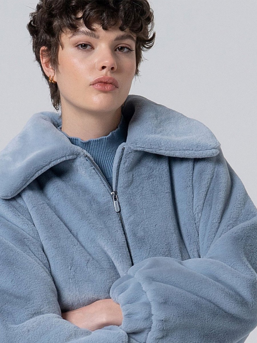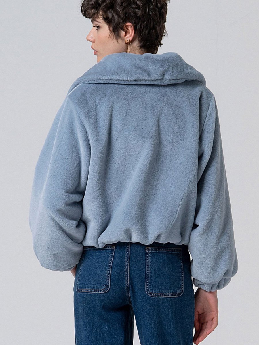 - Puha baba kék színű rövid műszőrme kabát