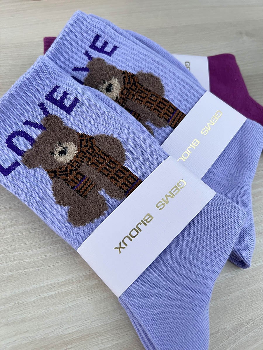 Levendula színű „Love” feliratú macis zokni
