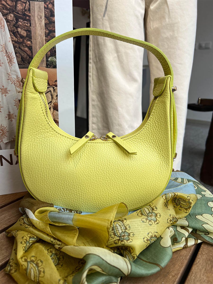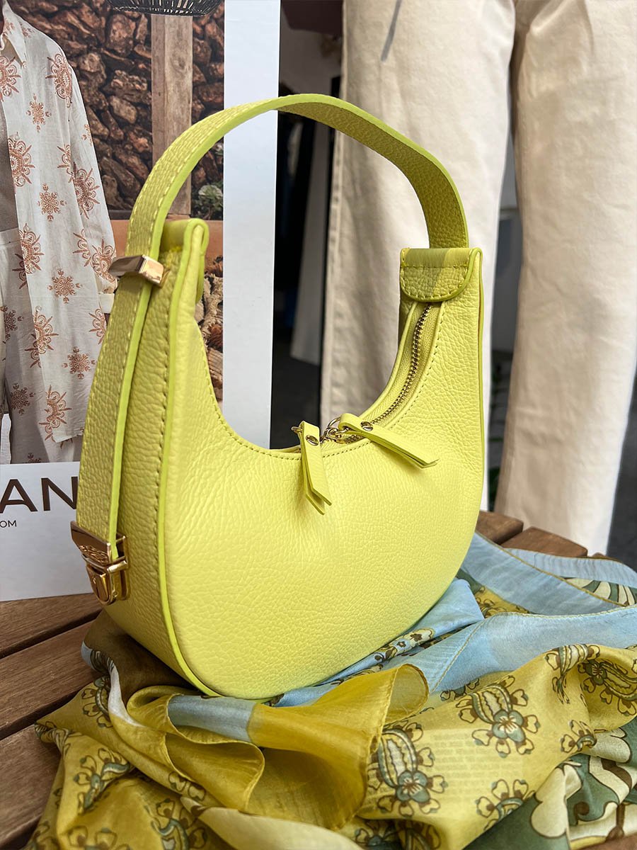 - Lime színű, arany csatos bőr táska