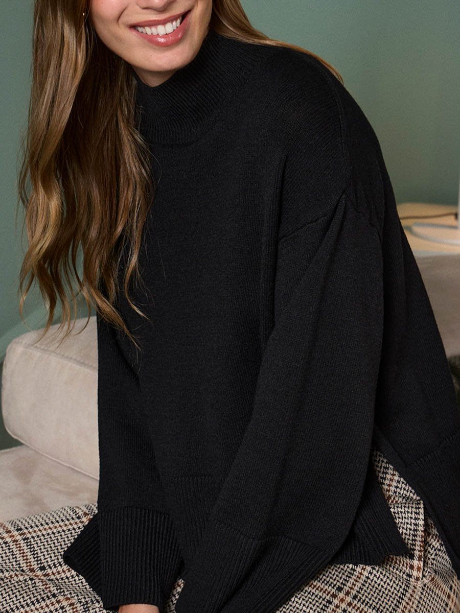 - Magas nyakú, kötött pulóver kiváló választás lehet az őszi, téli időszakra egyaránt.