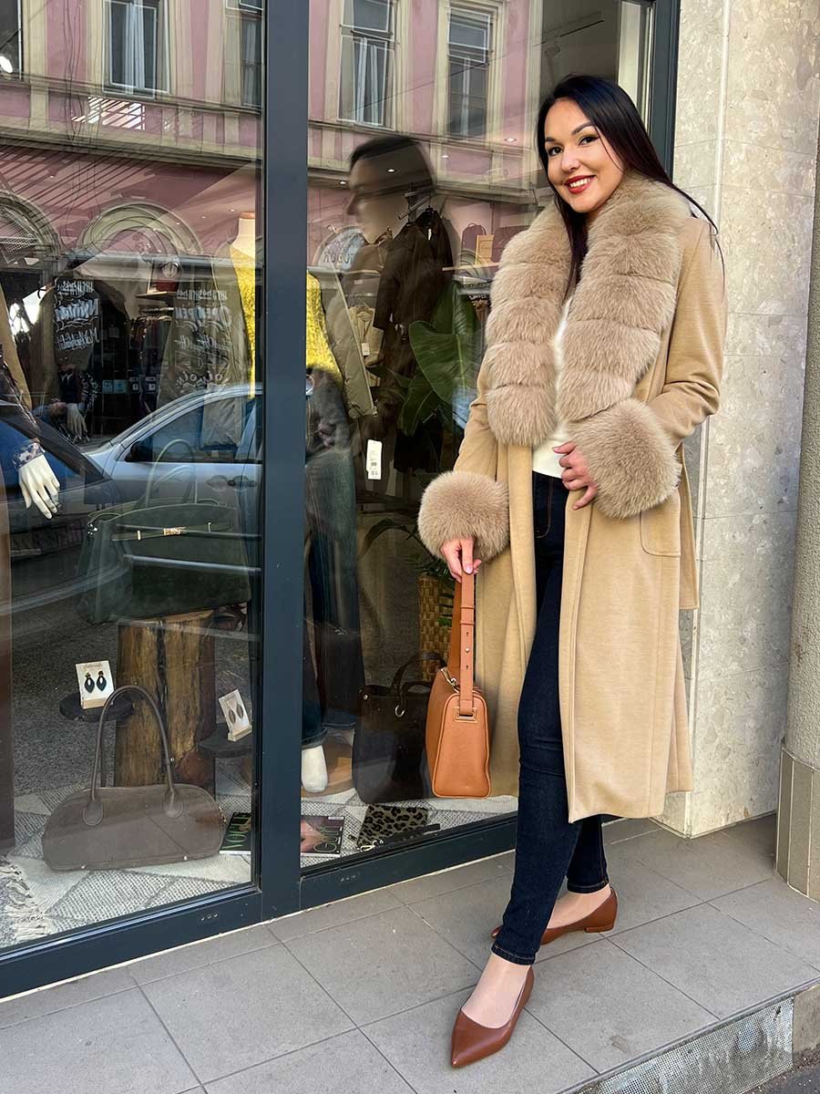 - Gallérján és mandzsettáján valódi szőrrel. Gallérjáról le gombolható.