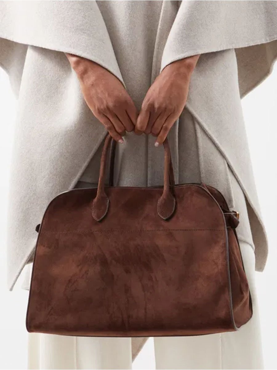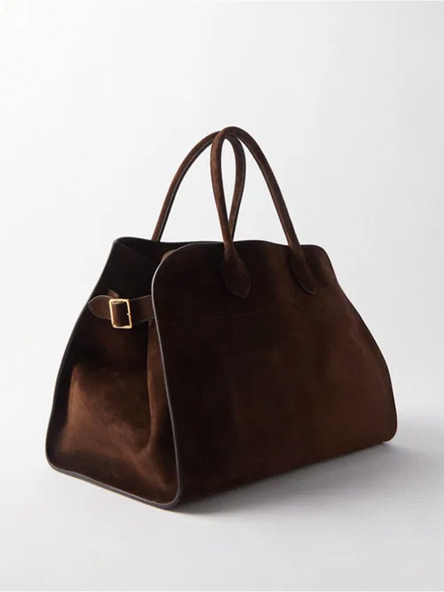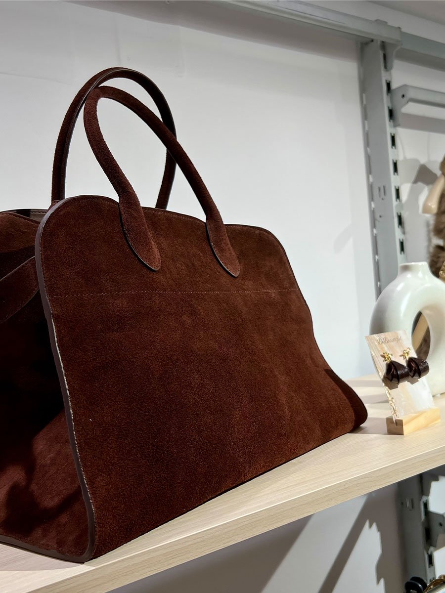 - Nagy méretű csoki barna színű, velúr bőr táska, utazáshoz, hétköznapi viseletre megfelelő választás lehet.