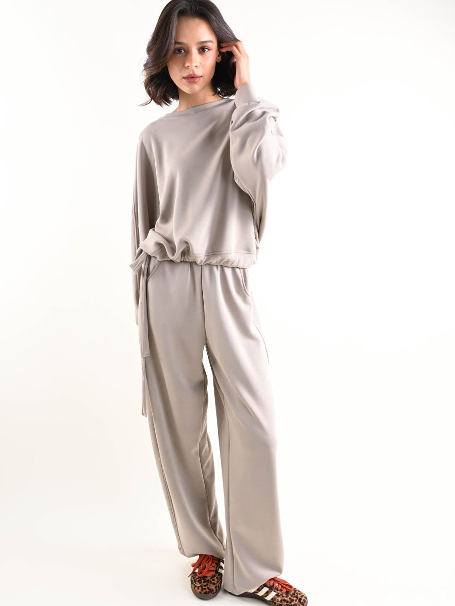 Palazzo stílusú vajszínű sportnadrág