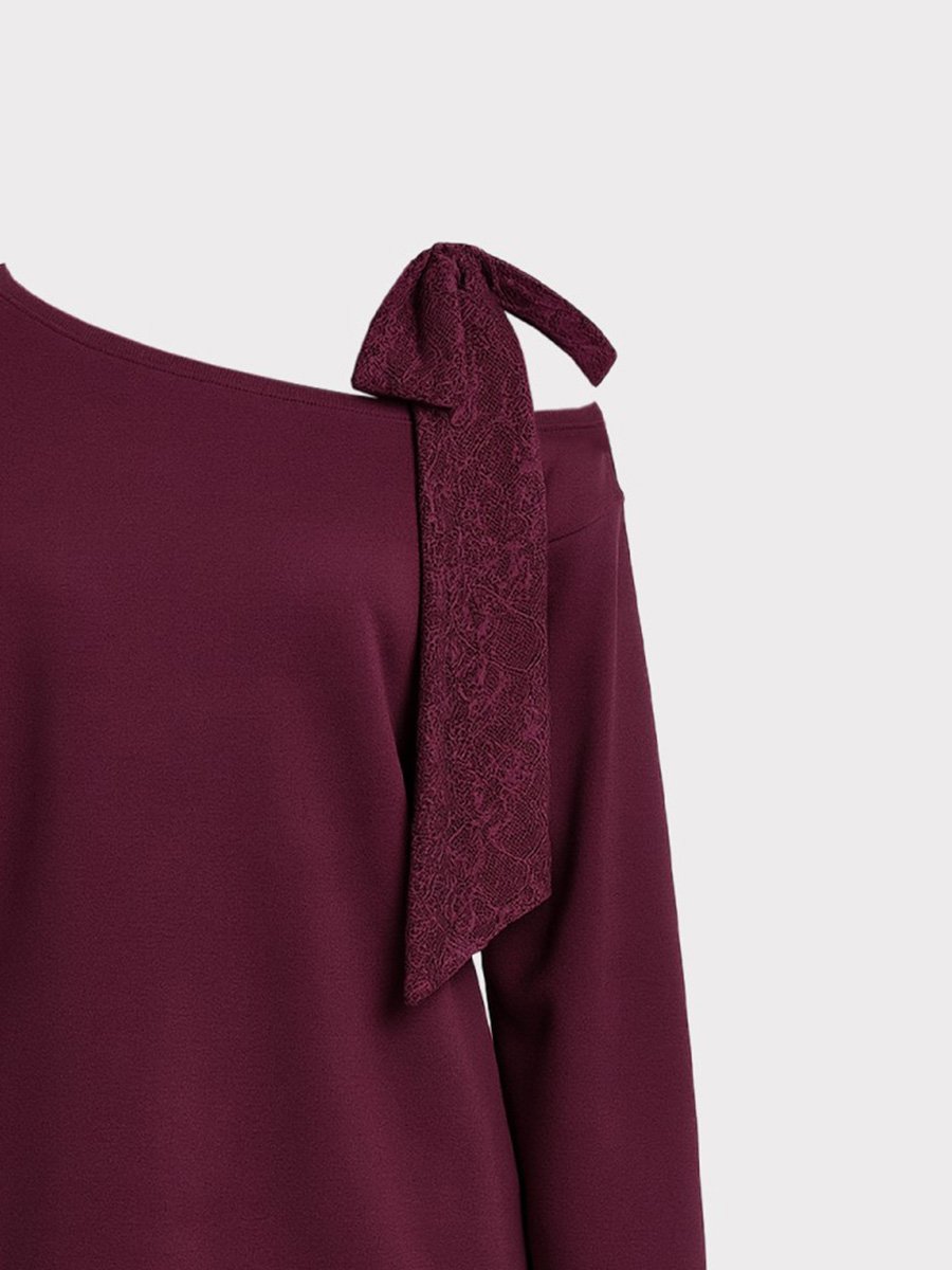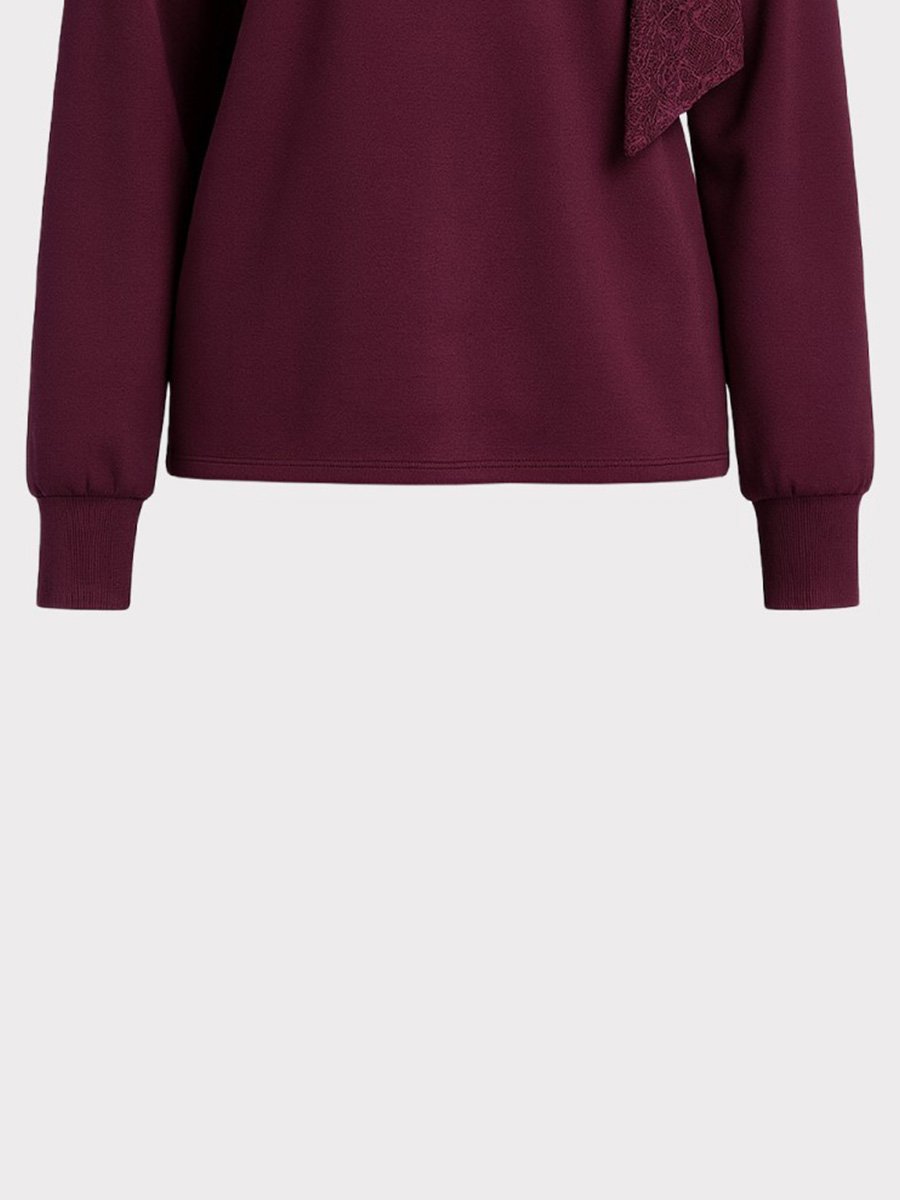 - Elegáns pulóver, váll nélküli szabással és csipkemasnival, amely romantikus és nőies hatást kelt. S-es méret