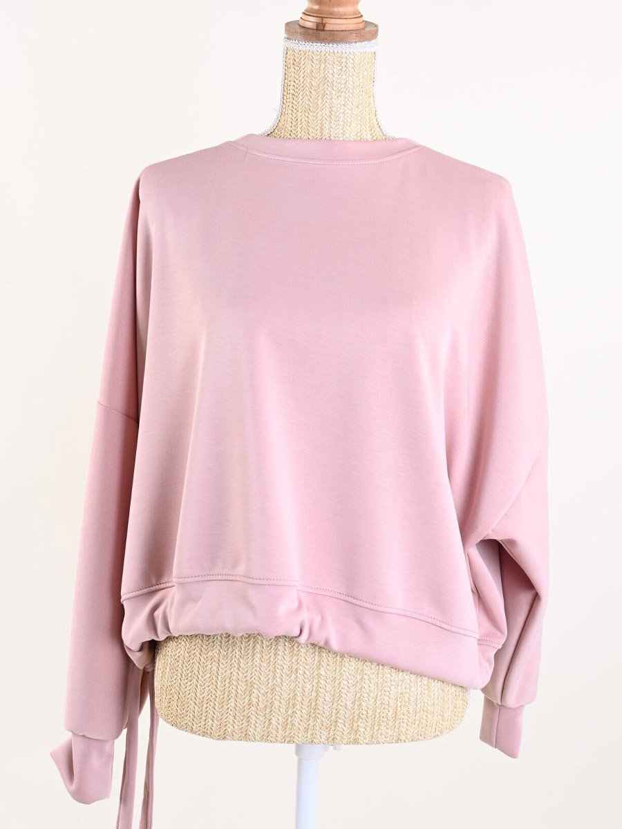 - Vajszínű sportos pulóver, rugalmas szegéllyel és masni részlettel. Méret nélküli