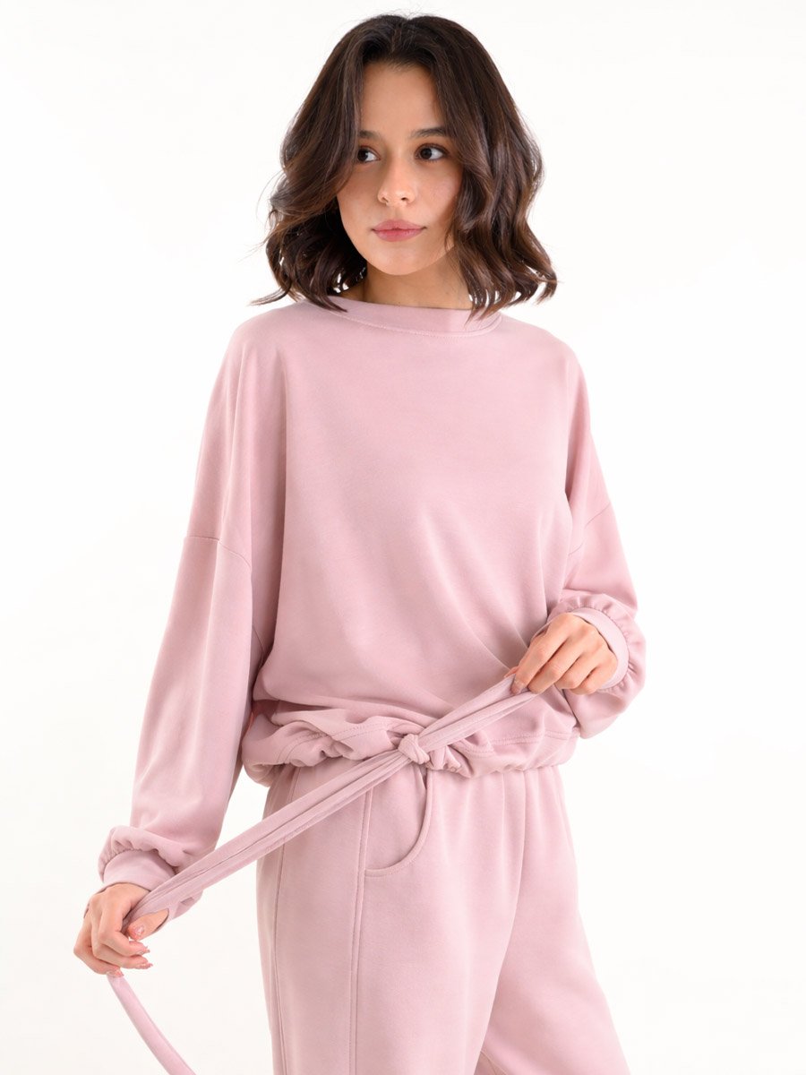 - Sportos, modern stílusú női pulóver, puha szabással és laza sziluettel