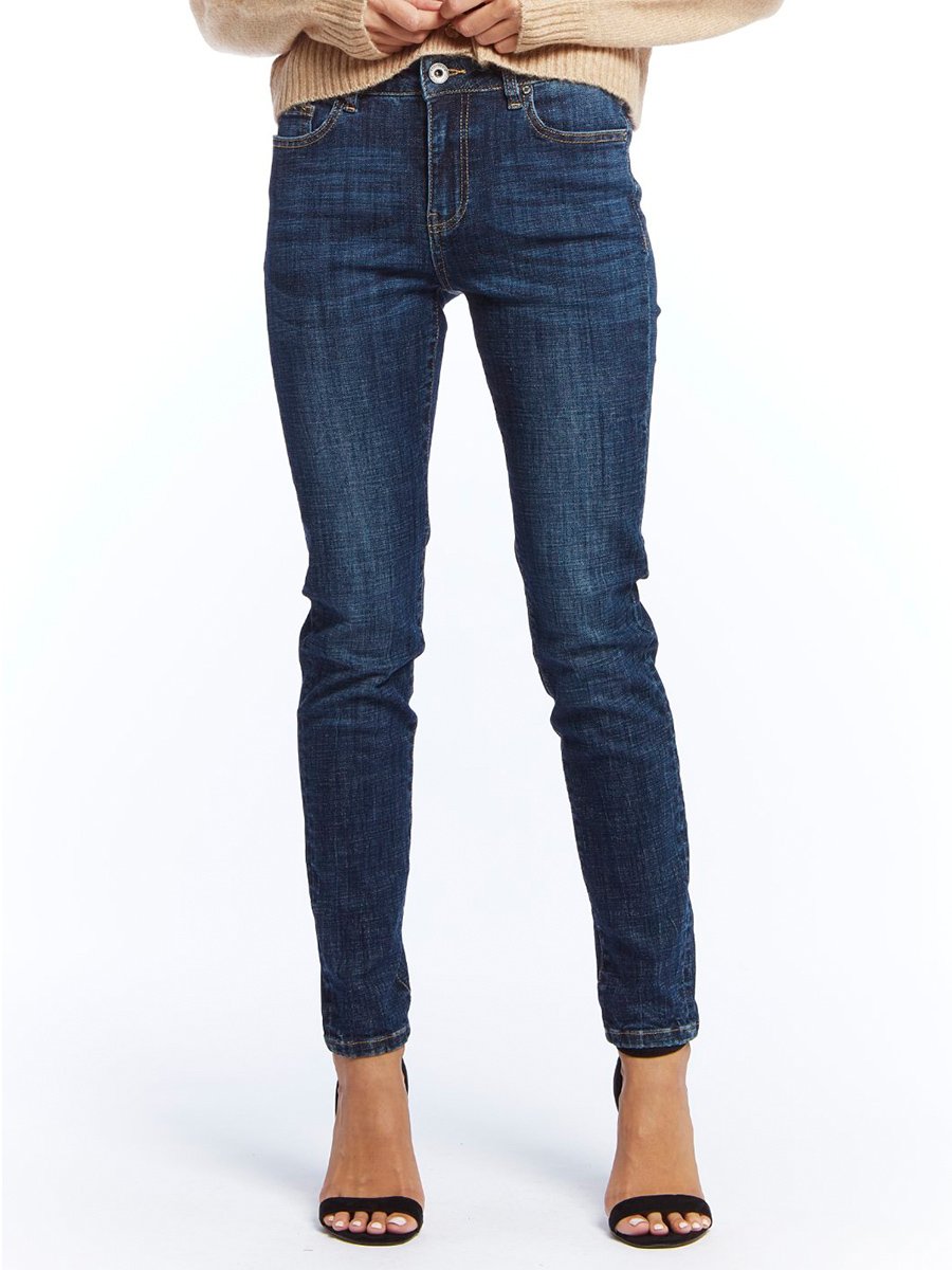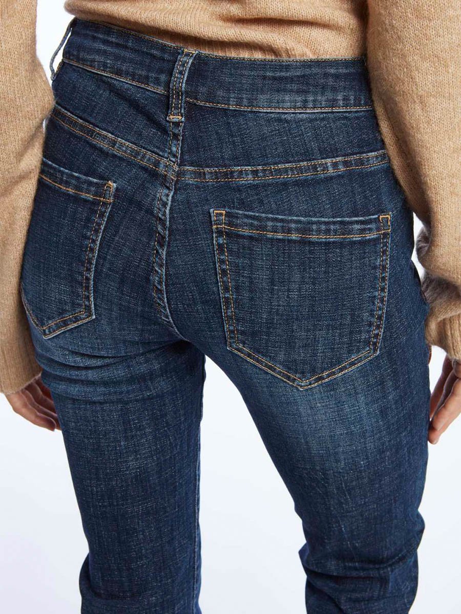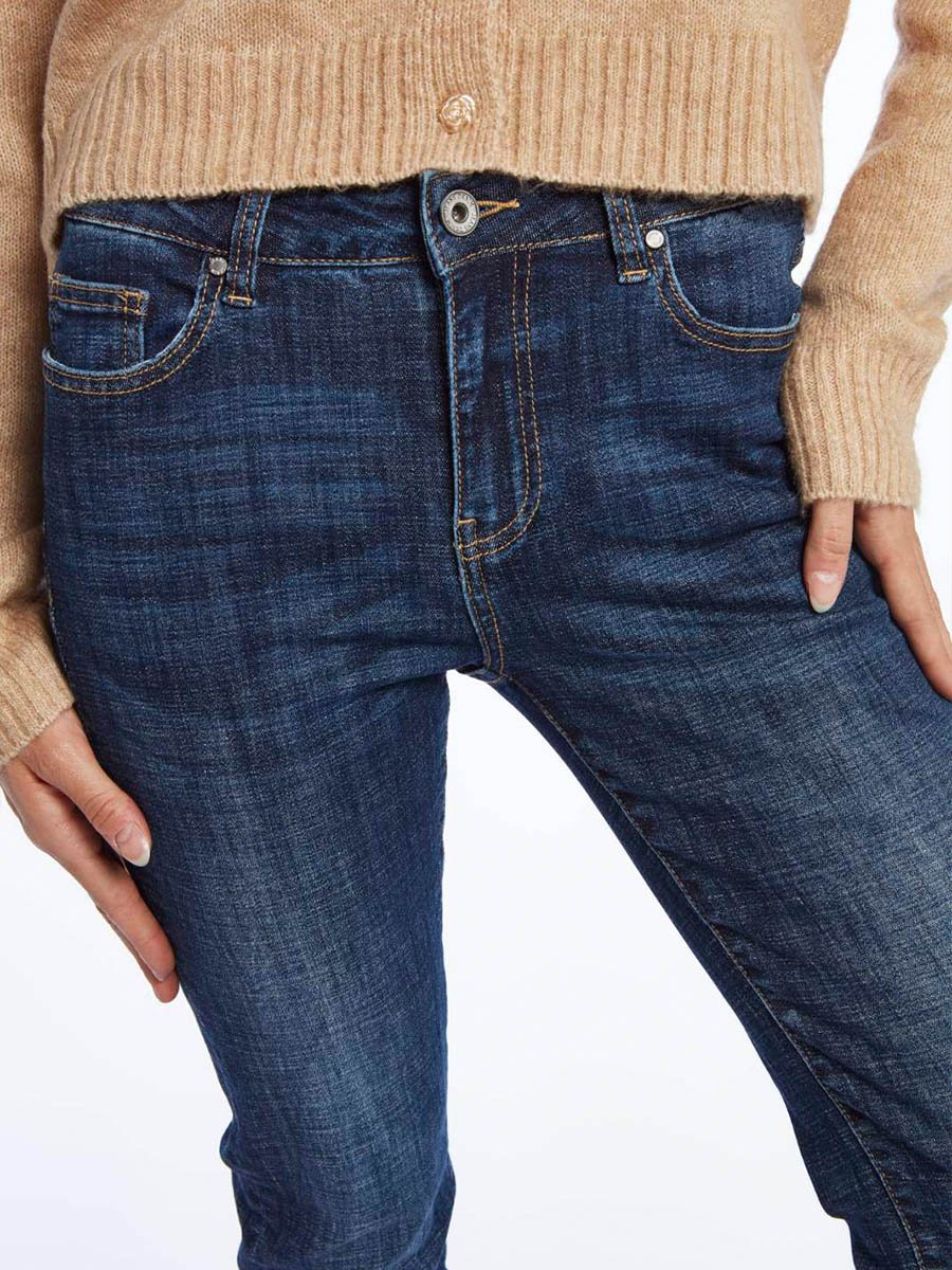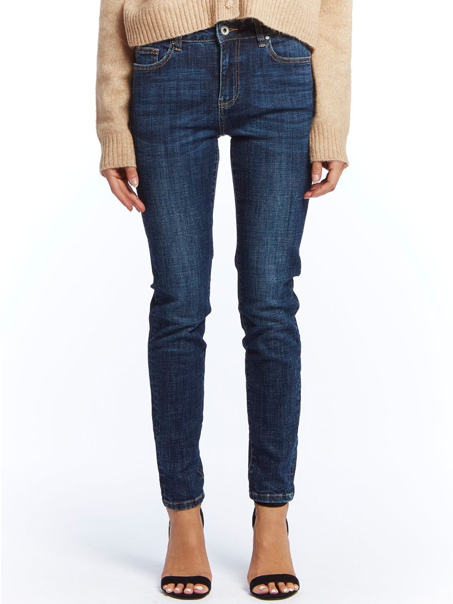 - Szűk szárú sötétkék farmer