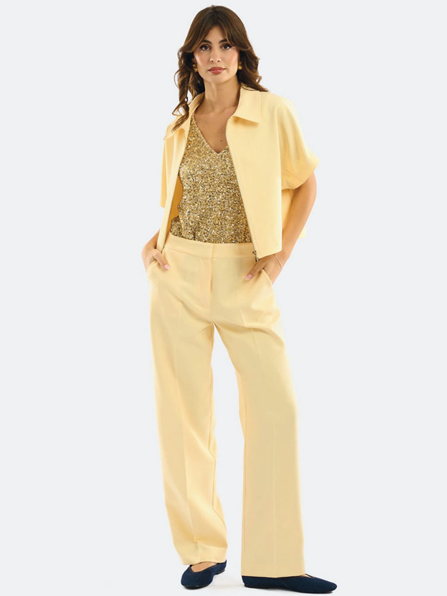 • Letisztult vonalvezetésű, elöl varrott szabású palazzo nadrág, amely hibátlan illeszkedést biztosít.