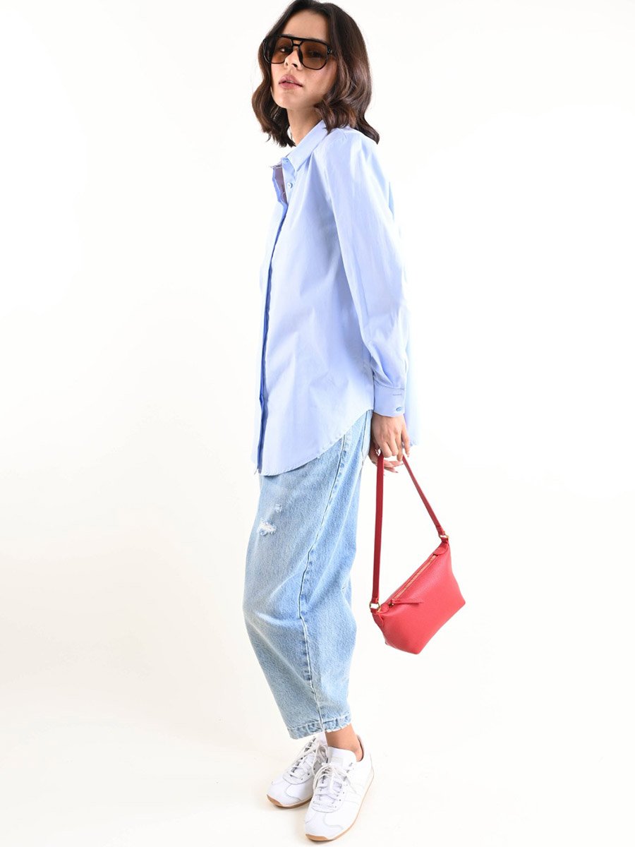 • A hosszú ujjak teszik teljessé a dizájnt, így az ing könnyen párosítható testhezálló nadrággal, farmerrel vagy szoknyával.