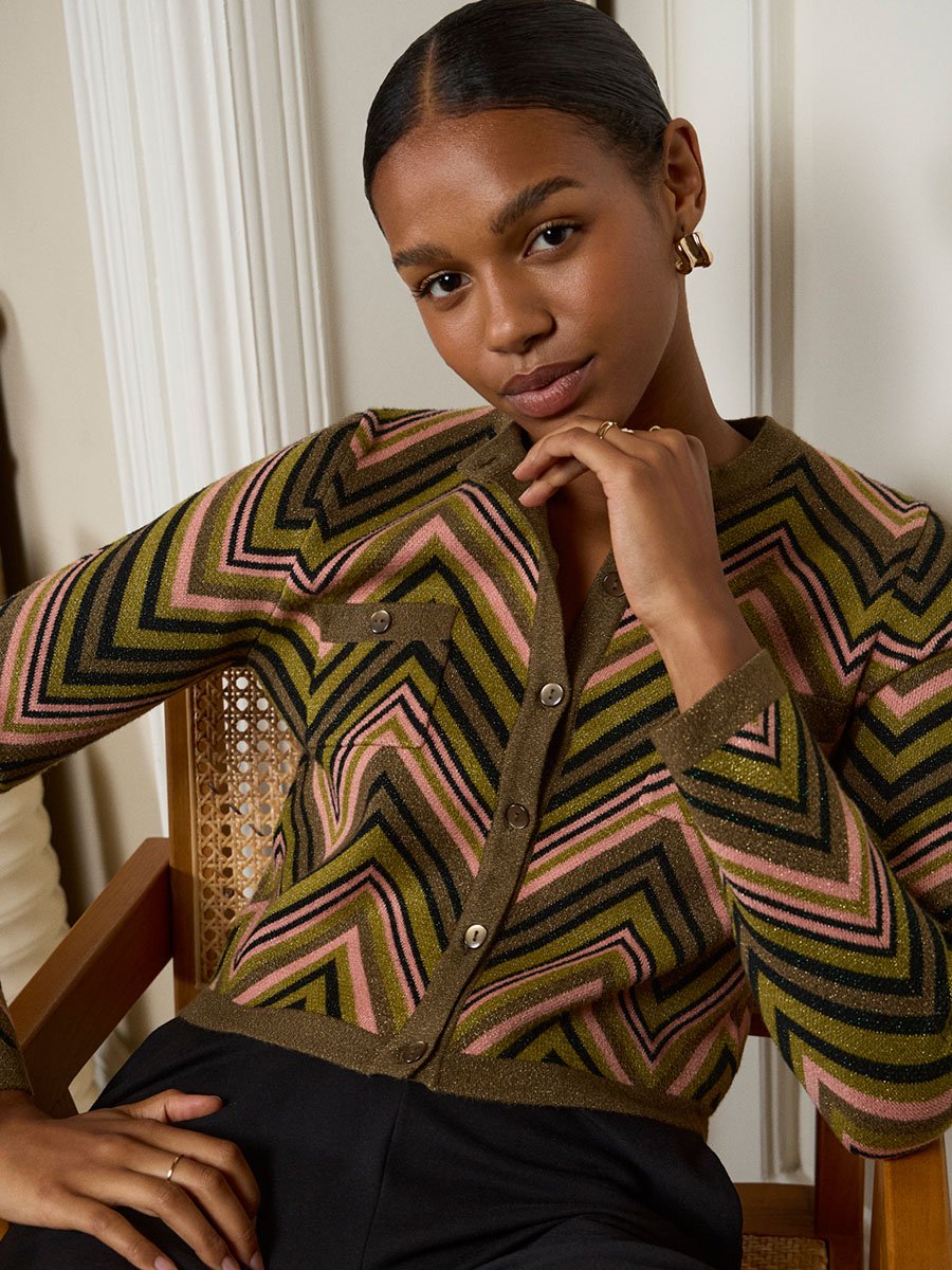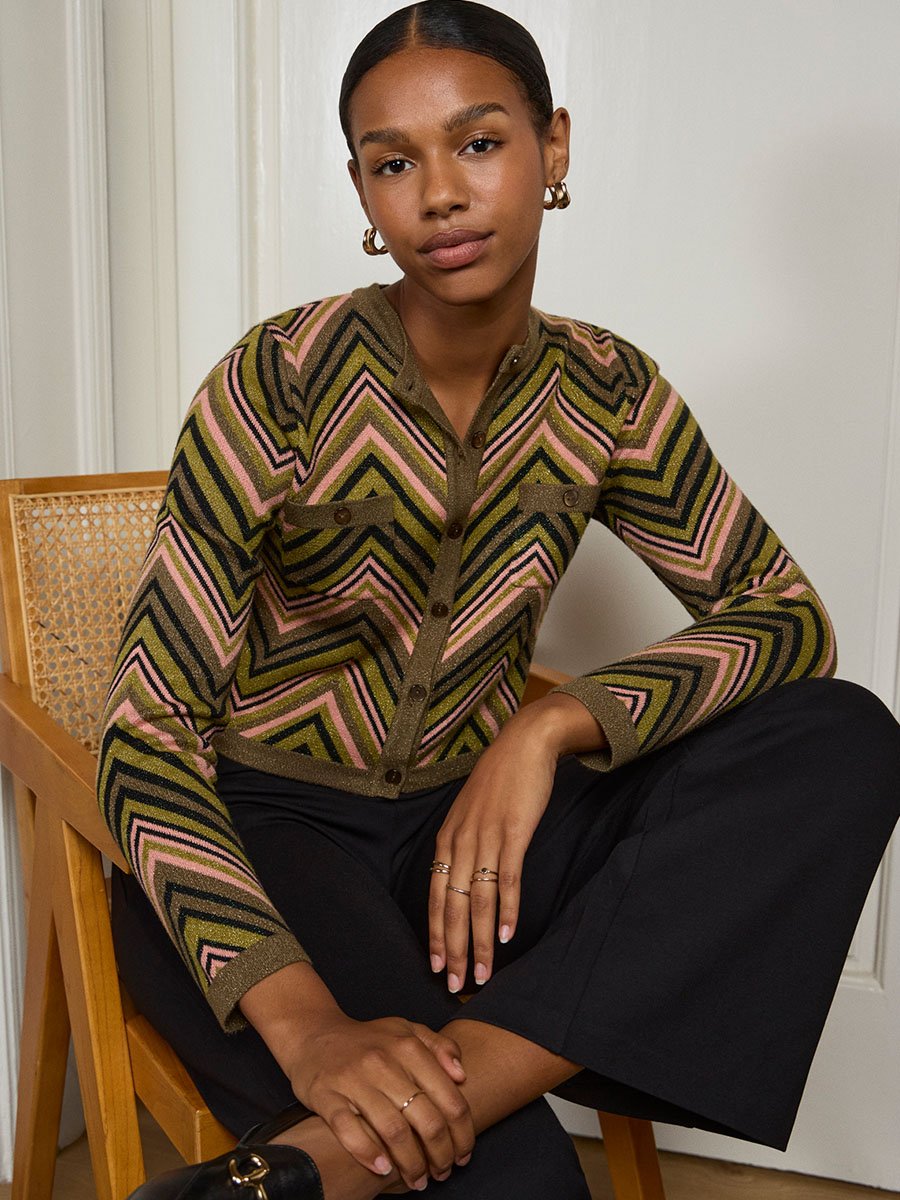 2025 tél, Elegáns termékek, Felsők, Kötött termékek, Leárazott termékek, Női termék, Pulóverek és KardigánokZöld rózsaszín csillámos kötött kardigán